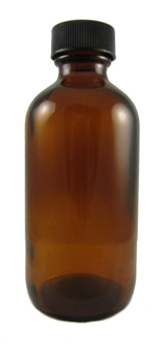Glass bottle for storage of oils or other liquids. Amber color helps slow aging of contents.