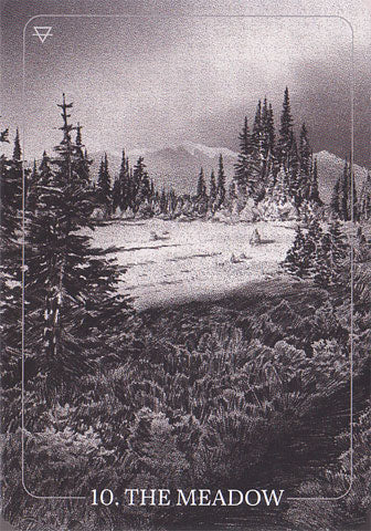 A very enviro deck, rendered in black and white, pointellist style artwork. Mountains, plains, weather, and celestial phenomena, along with a few human constructs, let you explore the depths of your nature and spirit, along with that of the earth. The book includes keyword and upright and reversed meanings for each card.