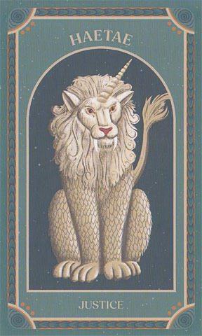 Divided by continent to which the feline is native, this deck features divine cats from around the world. Each card features a keyword, and the full color book has the keyword, a few sentences for the meaning, as well as the full meaning for each card.