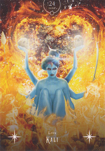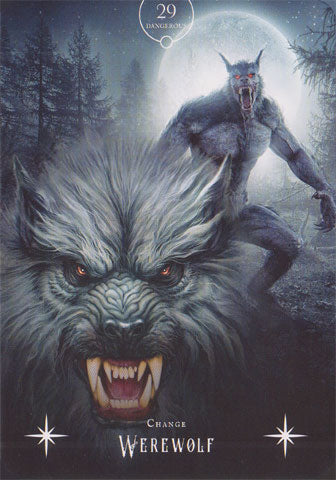 Discover your demons and dance with them. Your shadow side can hold the key to creativity and healing. Each card depicts a deep, dark, or dangerous being, and the book explains the meaning of the card, as well as the duality of it, and includes a plant and a stone for working with the faces of that hidden energy. Computer manipulated photographic art.