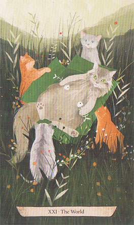 The puurfect deck for the catlover and anyone in tune with feline energy. Clean images and pleasant colors meet the eye in scenes of playful, relaxing or curious kitties winding their way through this curious deck. Keeping us on track with the Elements are Dandelions (Air), Branches (Fire), Mushrooms (Earth) and Saucers (Water) imaginatively placed along the path. Let this heart warming deck aid your life with its messages. Guidebook gives descriptions and meanings of each card, upright and reversed. It also provides six card spreads.