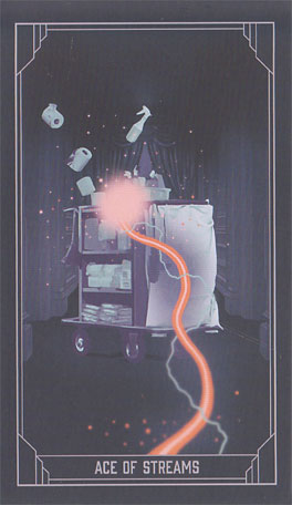 Bill Murray et al digitized and turned into a tarot deck. Based on the first 2 movies, this deck features computer manipulated photos of the players and scenes in a mostly Rider style deck. Most, but not all Minor Arcana are illustrated. The book explains the scene and upright and reversed meanings for the Majors, and upright and reversed meanings for the Minors. Alternative suite titles are intuitive.