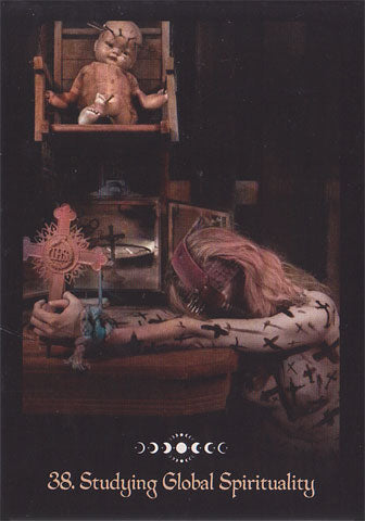 TRIGGER. WARNING. Computer manipulated photos featuring dark content and colors help you identify and overcome your personal shadows, so you can deepen your witchcraft practice and intensify your connection to the Divine. The full color book contains key themes for each card, an esoteric summary, and methods to activate the insights you receive. Contains full frontal female nudity, and images of (consensual) bondage and pain.
