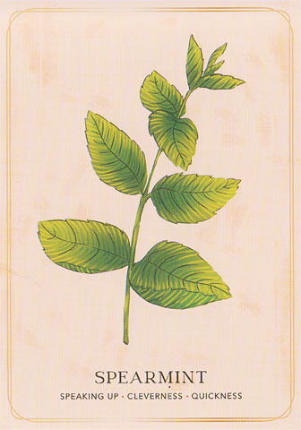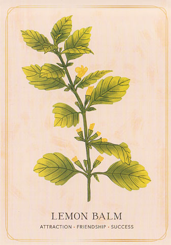 A deck of herbs that can be used in teas. With spreads for personal growth, daily readings, and more, and spells to do with the herbal teas, cards with botanical illustrations of the herbs or tea cups, and keywords on each card. The book explains the magical powers of the herb, and contains keywords for each.