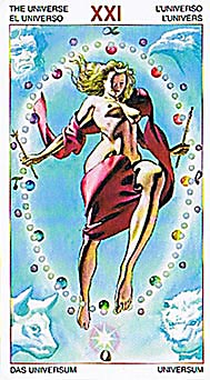 THE 21st Century Golden Dawn Tarot Currently there are a few Golden Dawn Tarot decks available. They are all attempts of the artists to recreate the original design. Bertia asked Evangelisti to do something completely different. Instead of trying to improve on the known drawings, he simply gave Evangelisti descriptions of the cards from the original Golden Dawn documents. The result is a breathtakingly new, yet faithful to the original concept. Instead of all the images being seen from the front, the views are more like films. You get images from below (such as The Wheel of Fortune) or from above (such as The Devil). The colors are bright and brilliant, filled with dash and intensity. The high priestess is a powerful woman in the midst of controlling powerful energies as she casts a spell. The horses of The Chariot are in full gallop, almost falling over themselves pulling the chariot. The charioteer can barely control them. The lion in the Strength card looks like he could tear your arm off and eat you for lunch without even panting. This deck does not limit its inspiration to the Golden Dawn. It also uses the images from the RWS as the source for the Minor Arcana (the original Golden Dawn didn't have images on the Minors). As a result, for the first time ever, anyone who knows the RWS model can immediately work with this Tarot. For a true Golden Dawn deck with a 21st century feel, this is the deck you must have.