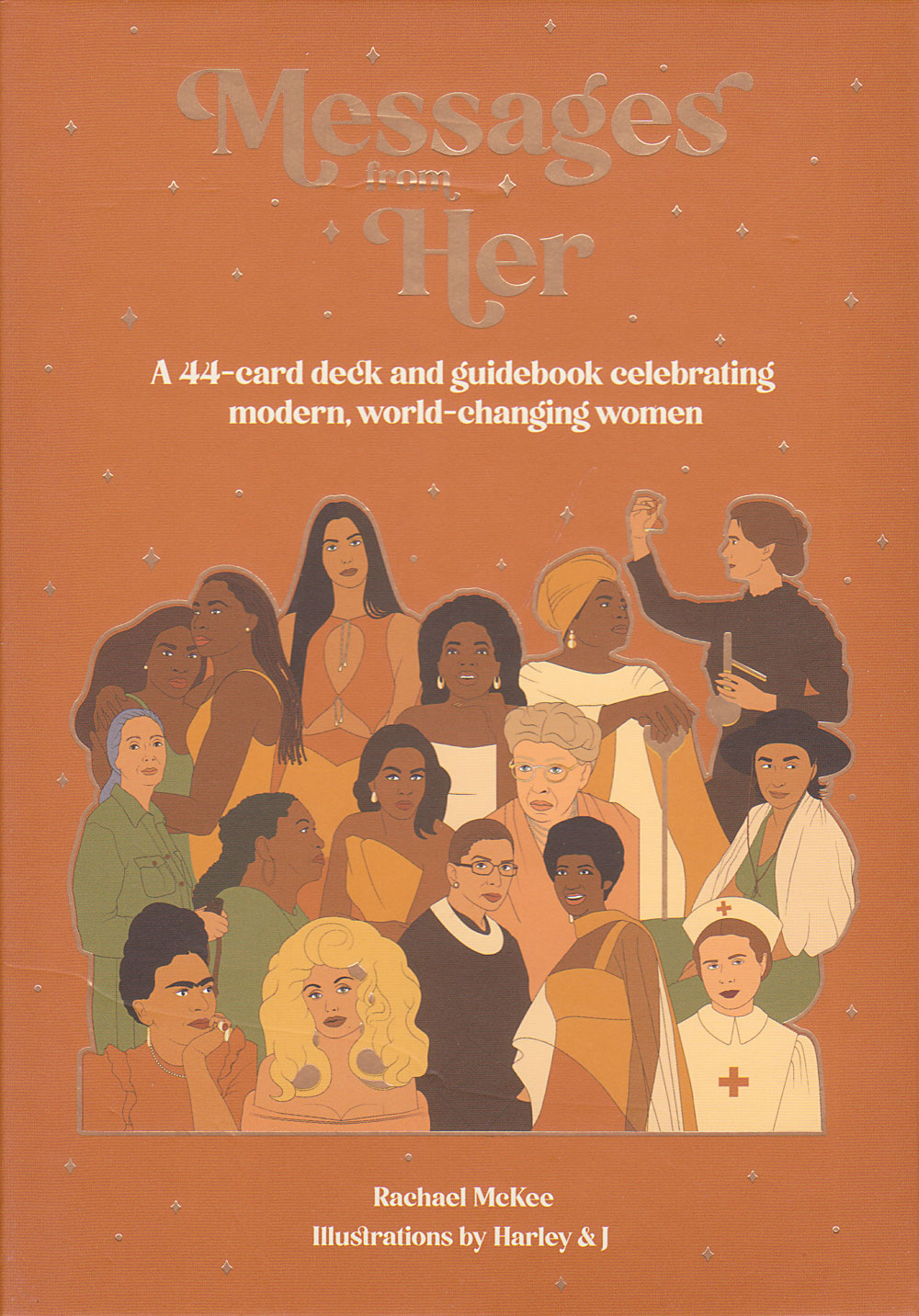 Messages From Her celebrates the lives of real, modern-day women in a 44-card oracle deck and guidebook. Invite these women into your life to inspire and empower you. Each card is a woman from modern history that represents a virtue or ideal, such as Amelia Earhart for Adventure, Beyoncé for Power, and Marie Curie for Knowledge. These beautifully illustrated oracle cards can be used for divination and guidance.