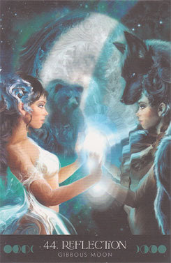 Soothing muted colors will calm the senses as you study and read from these magickal cards. Each card resonates with a cycle of the moon giving inspiration from the celestial realms. You'll meet guardians from eleven Moon Temples that will guide you with their messages. Printed on large card stock for ease of reading, and study.