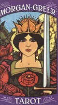 Based on the structure of the Rider-Waite Tarot, this uniquely expressive deck features magical imagery presented in deep, saturated colors. The borderless 78-card deck allows the details of tarot scenery and symbolism to be viewed from a close, intimate perspective. Morgan-Greer Tarot draws the reader into its evocative artwork. When laid out in a spread, the full scenes on borderless cards create a beautiful picture.