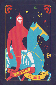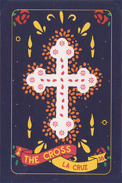 Small, easy to handle cards with simple yet colorful artwork on dark purple background. You'll appreciate the tradition of Día de los Muertos celebrated within these cards as you divine the answers to your questions. Guidebook has been written in both English and Spanish. It gives key words, a short story, meaning of card and Lenormand meaning for the Lenormand style cards in the deck (read more in Publisher's Marketing below). Five card spreads are also offered in this informative guide.