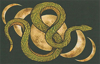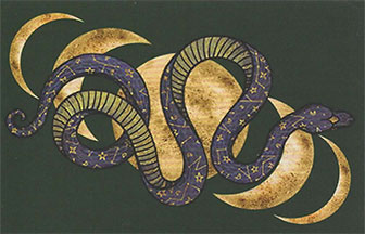 A box of spells, perfectly sized for pocket, purse, or altar, which use traditional magic, featuring stones, herbs, angels, oils, and other basic energies and ingredients for protection magic. No book - the spells are on the cards, with a lunar and snake image on the reverse.